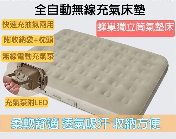 【台灣品牌 高雄現貨】無線內置款 自動充放氣床墊 免拉線電動充氣床(蜂巢獨立筒款)充氣睡墊 午休床 露營床墊