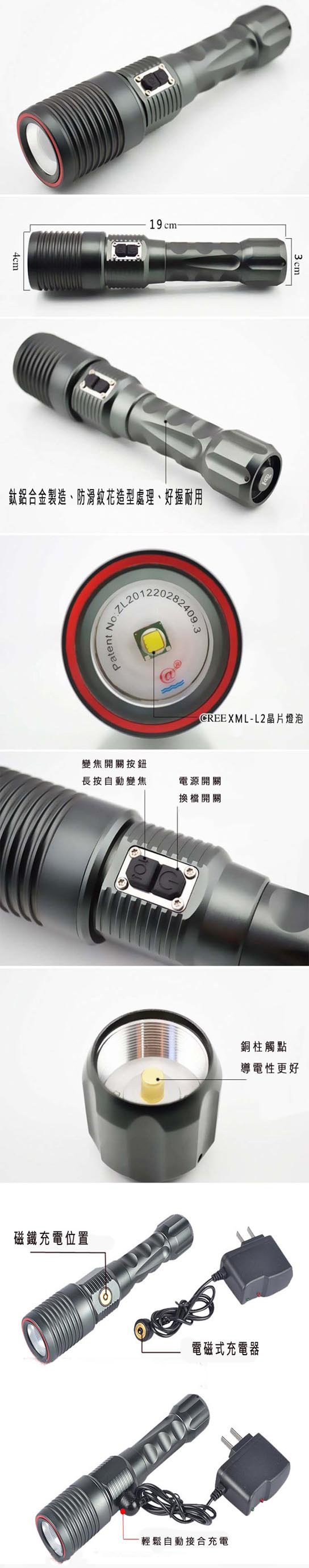 全自動電子觸控式按鈕變焦手電筒