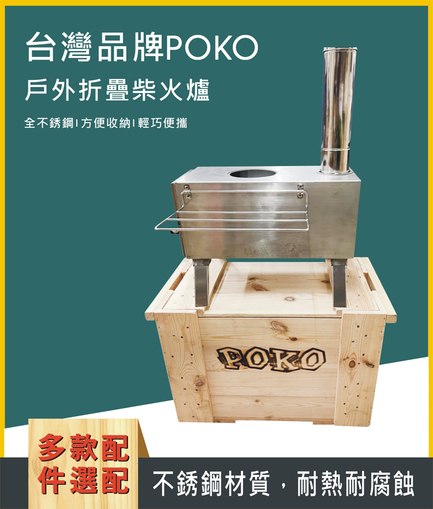 即開即用【台灣品牌 POKO柴火爐】觀火玻璃款 折疊材火爐 育空爐 星空爐 取暖爐 焚火台 火箭爐 非煤油爐 燒柴爐