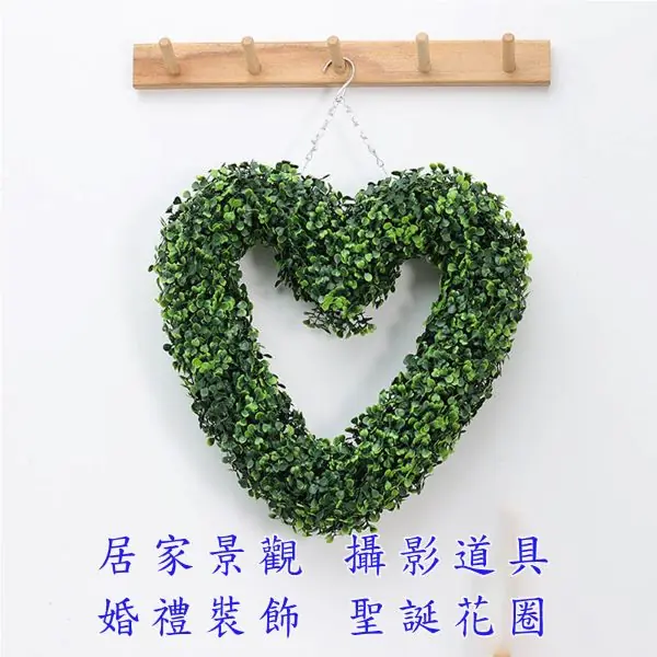 米蘭草愛心花圈 有 LED燈款 雙面可掛 永生花草牆 植物牆 米蘭草 尤加利葉 花草牆 網紅牆