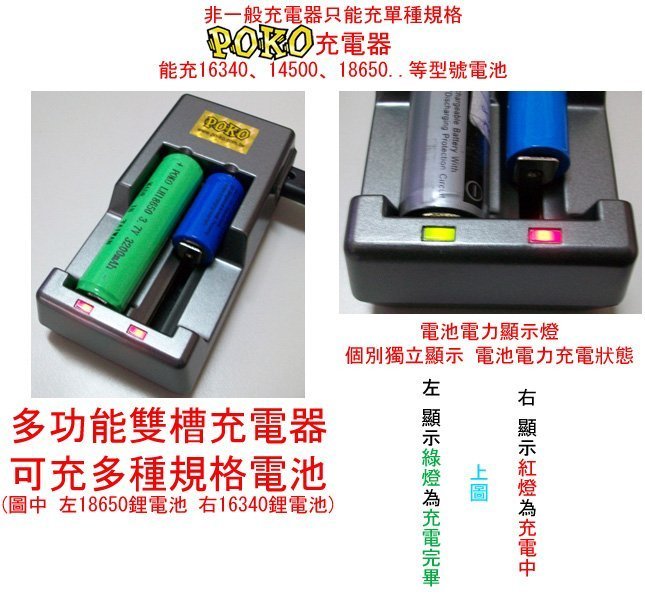 獨立顯示電源燈 可看哪顆電池已充電完畢!!