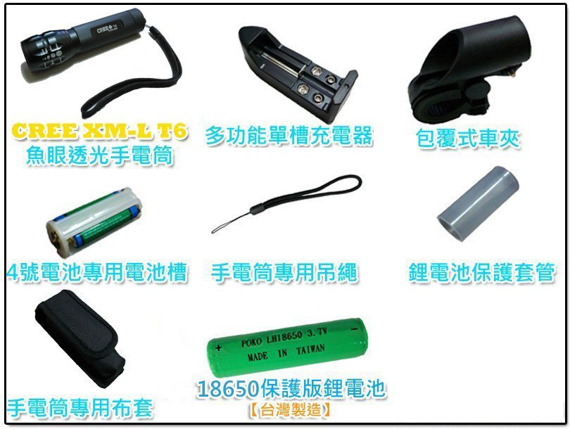 CREE T6 全配共8項產品 (如圖)