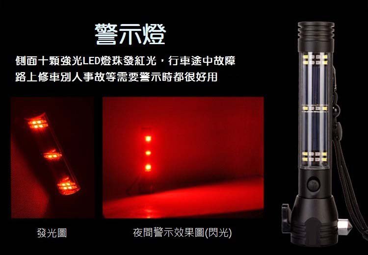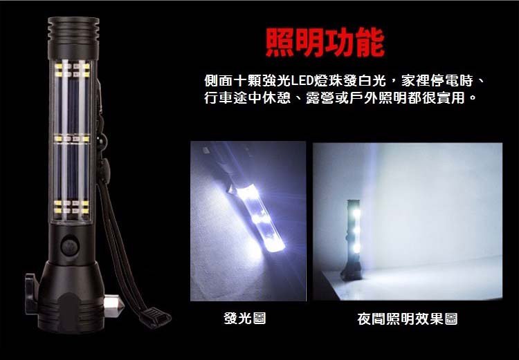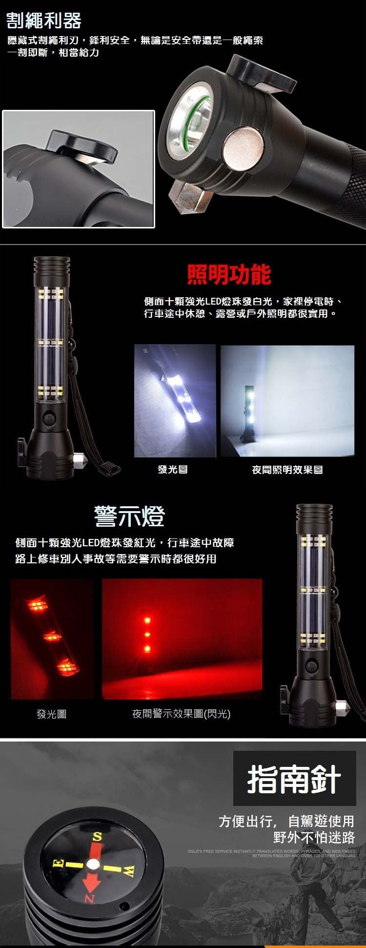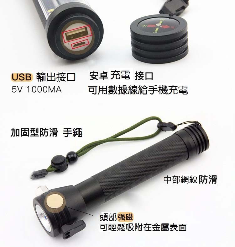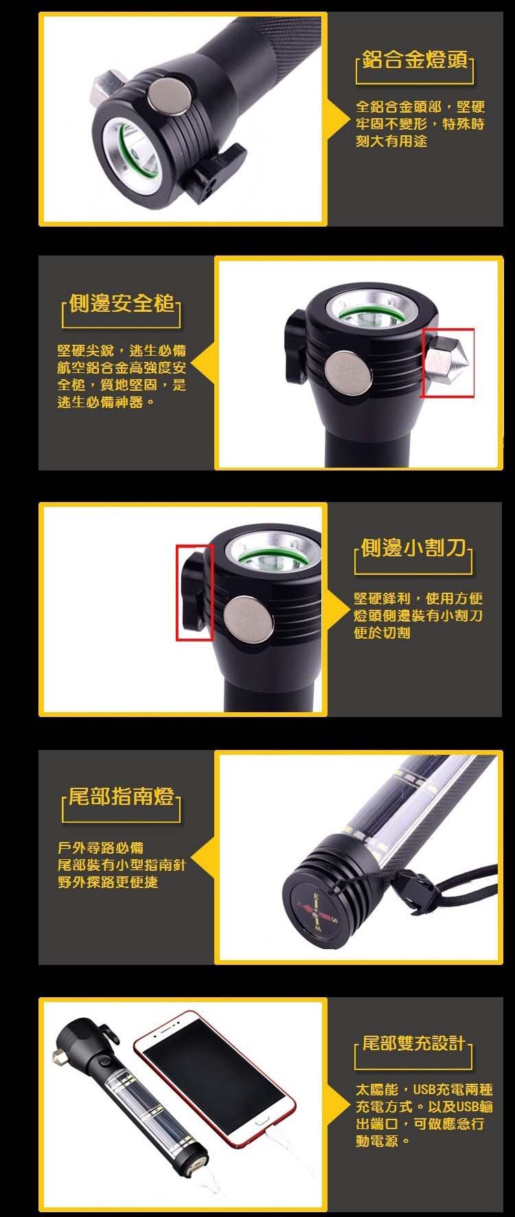 車用擊破器(含燈) 強光全能手電筒 可太陽能 USB充電