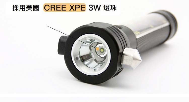 手電筒 側邊安全槌 側邊小割刀 吸鐵頭燈 尾部指南燈 尾部USB充電